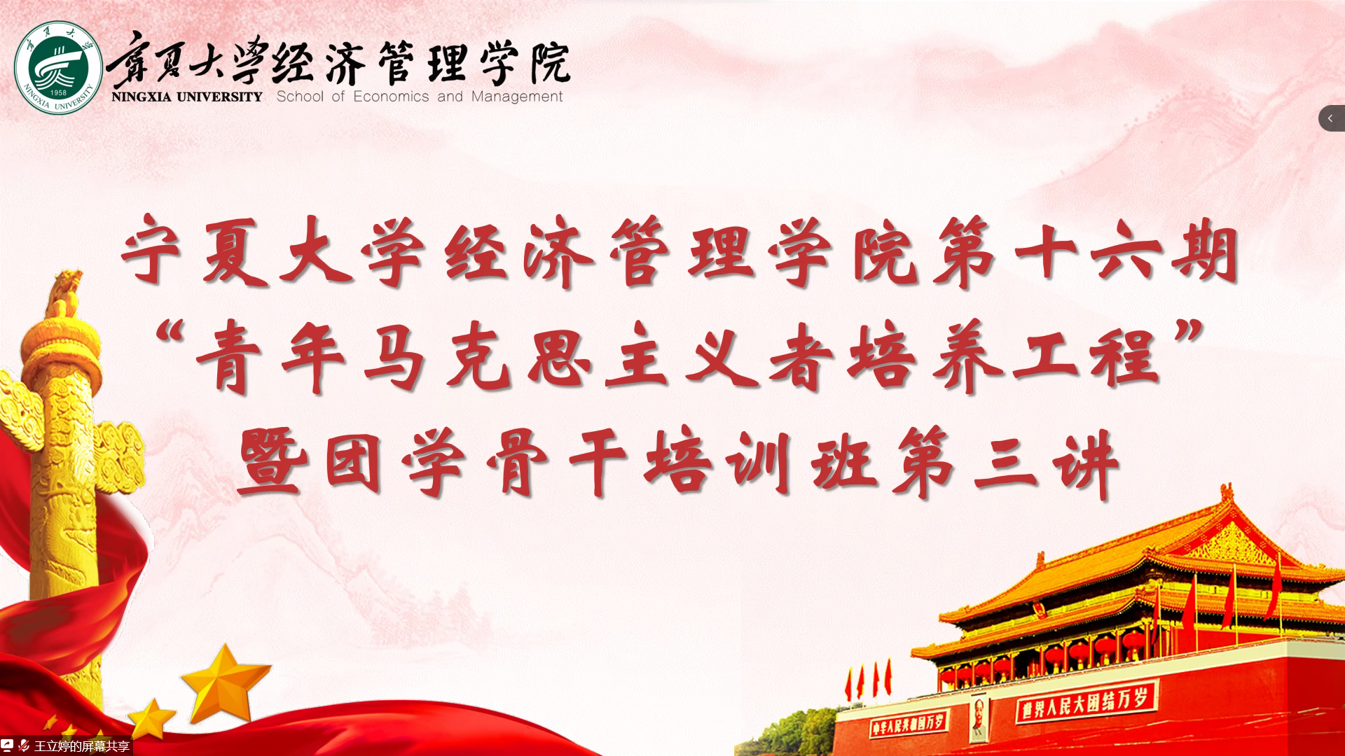 11月18日,beat365在线官网入口(西部发展研究院)第十六期“青年马克思主义者培养工程”暨团学骨干培训班第三讲于线上顺利举行。第十六期青马班成员参加本次培训。本次培训由beat365马克思主义公司凌云宣讲团成员刘成龙、沙宣、刘祎曼、马明明、潘薇主讲。