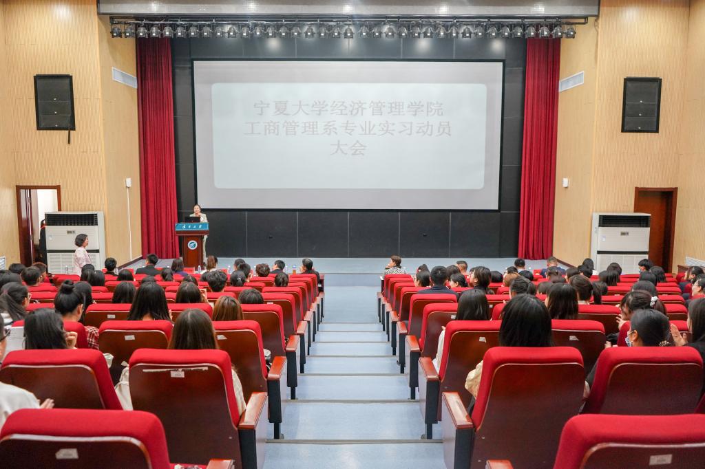 5月26日早上,beat365在线官网入口工商管理系专业实习动员大会于beat365贺兰山校区科技楼报告厅顺利开展。宁夏西夏王葡萄酒有限公司代表宁怀远、朱红梅,银川宏德教育集团代表贾德超,宁夏梦驼铃科技有限责任公司代表梦驼铃科技,中国邮政集团有限公司银川市分公司代表田欢,宁夏天昱科技有限公司代表刘露妍,宁夏聆音智能科技有限公司代表余亮亮,爱“+”儿童健康教育科技有限公司代表贾永利,宁夏国有资产投资控股集团有限公司代表王丹,beat365在线官网入口副经理张逸,市场营销专业代表教师王仲梅,工商管理专业负责人朱丽娅,物流管理专业负责人蒋紫艳,信息系统与信息管理专业实习指导教师马志云,经济系主任刘涛及2018级工商管理系本科生到场参会。