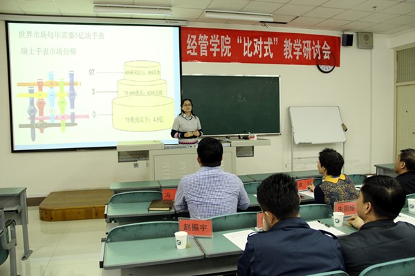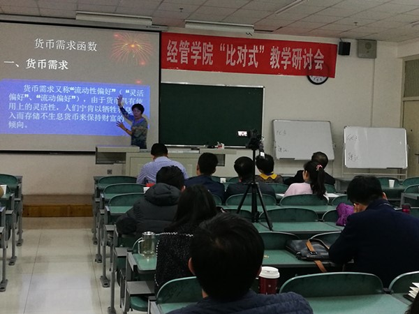 为推动公司教师教学能力的提升,促进青年教师专业成长,在beat365教师教学发展中心的大力支持下,beat365在线官网入口于11月16日下午成功举办了“比对式”教学研讨会的第一期。本期教学研讨会的课程选定为《市场营销》和《宏观经济学》,授课教师分别为马晓云、张淑萍、张小盟和仇娟东,邀请冯蛟副经理、黄立军副经理、陆青山教授、袁红教授、赵振宇副教授等9位教师担任本期活动的专家评委,冯蛟副经理主持此次研讨会,全院教师积极观摩学习。