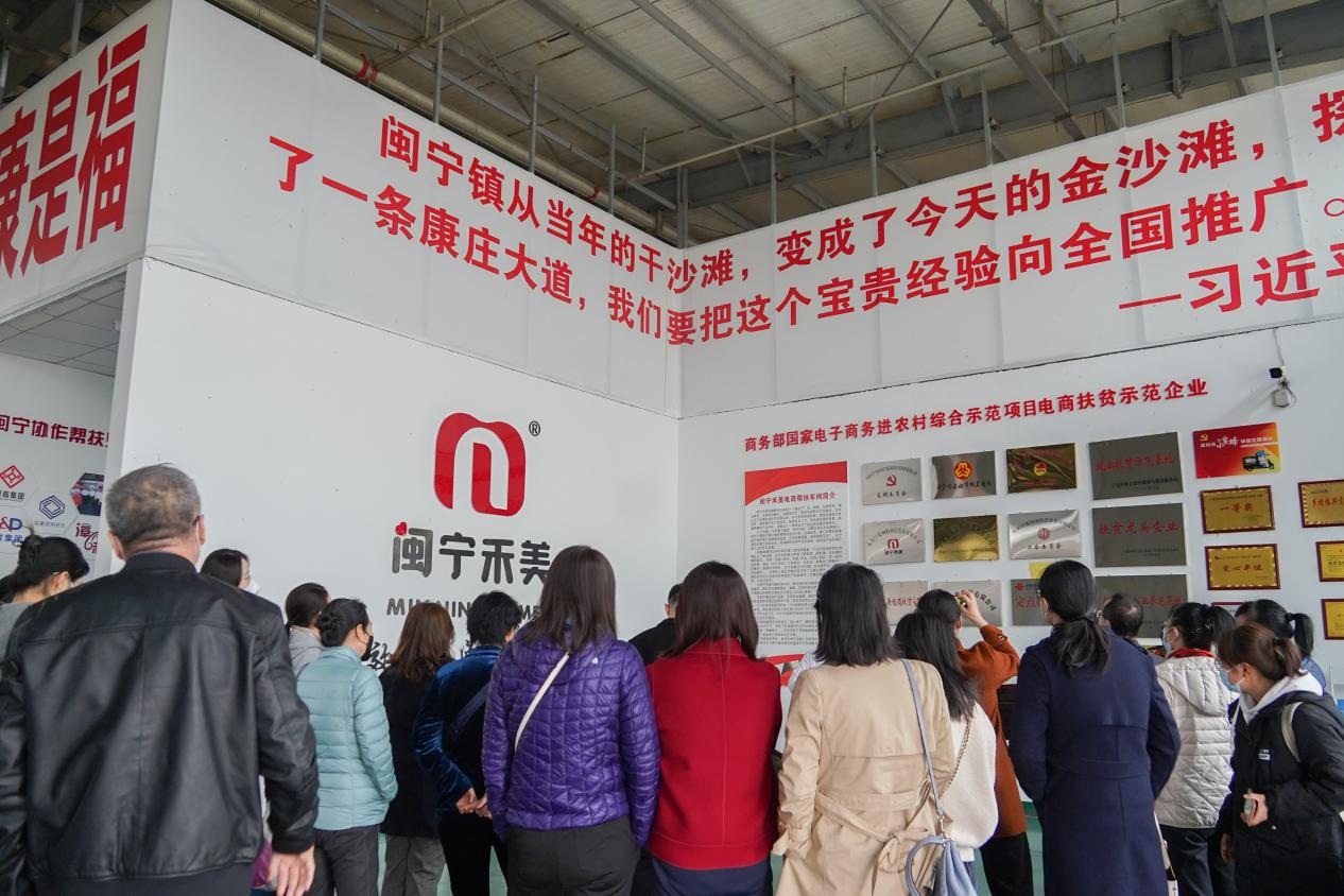 教师队伍首先抵达乡韵闽宁名优农特产品展示展销中心。讲解员马园通过短片:“闽宁携手铸康庄大道”带领教师回顾闽宁镇的致富道路。随后,教师队伍去到了闽宁禾美扶贫车间,参观闽宁巧媳妇儿脱贫创业超市,观看农产品直播现场,品尝农产品美食。